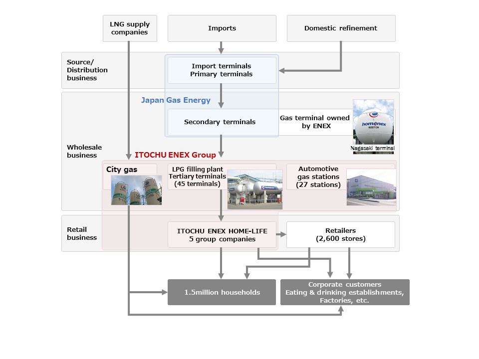 In April 2009, we established the Japan Gas Energy Corporation, in association with Japan Energy Corporation (now ENEOS Corporation) and Nissho Petroleum Gas Corporation, as a joint venture integrating both LPG distribution and wholesale functions. In addition to aiming to build an LPG business group with comprehensive competitiveness, the three companies are also seeking to integrate and centralize business domains from procurement to wholesale business, to enhance capabilities and competitiveness by improving logistical efficiency.